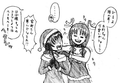 今年は『お隣の魔女さん』でクリスマスです。コスプレ好きな宮部さんは魔女コス(?)を普段からしてる綾音に色々着せたがり、ムッツリな考輝に見せてはその反応を楽しむ、というエピソードがあるんですけど、描きたいなと思いつつもなかなか漫画作業が進みません(汗
