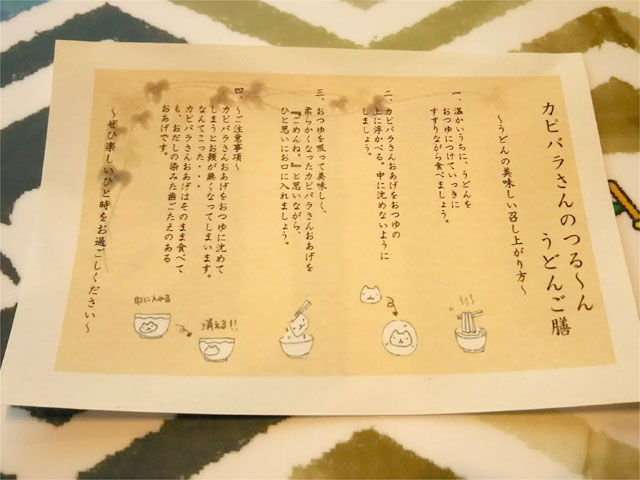 しかしうどんを注文すると可愛い食べ方メモが出てきたのでこれはこれで嬉しかったです。