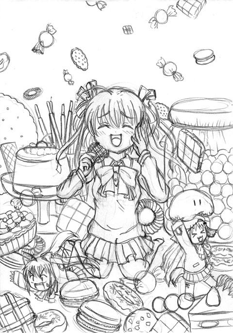 しかしいざ画面をお菓子で埋め尽くそうとすると、なかなか何のお菓子描こうか思い浮かばないものですね(汗