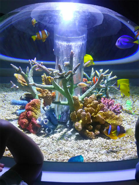小さい水槽は工夫が凝らされていてとても綺麗でした。最近人気なチンアナゴは実物はちょっと気持ち悪かったです。グッズだと可愛いんですけどねぇ・・・。