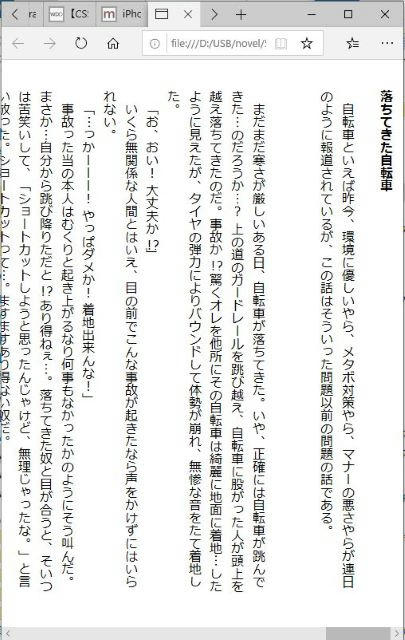 サイトですが小説ページをスマホでは縦書きで読めるように改造しましたー。