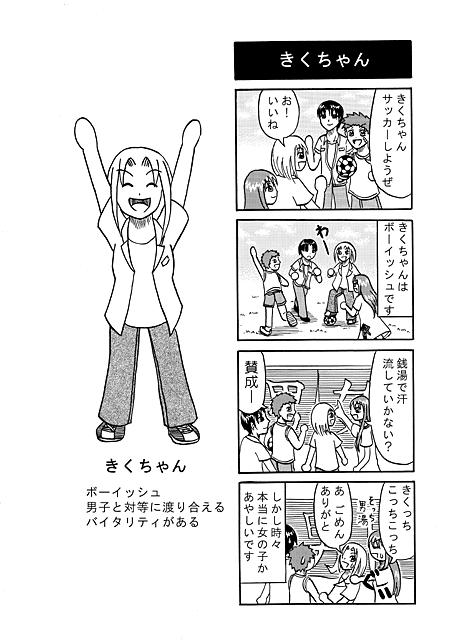 4コマ第3弾。次の子は初めて描いて友達に見せた時、「男の子だと思った」と言われたきくちゃんです。