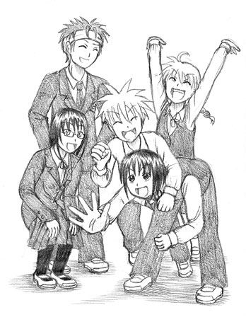 何かおもむろに描きたくなった料理研究部。ポーズがおかしいのは気にしない方向で。榊が手前にいる久美よりも大きくなっちゃったなぁ。