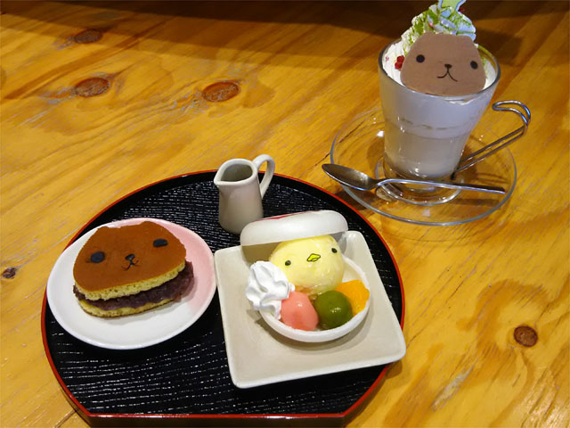 今回のカピバラさんカフェは和風モチーフな所為かいつもより飾りつけが少なかったですが、皆の頭の上にツリーが乗ってるのが面白可愛かったです。