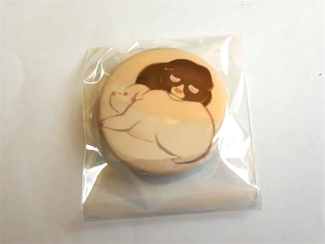 芳中の描いた動物の缶バッチガチャが置いてあって、見事欲しかった子犬のバッチをゲットしました!正面向いた子犬も欲しかったのですが、こっちが出たので我慢です。