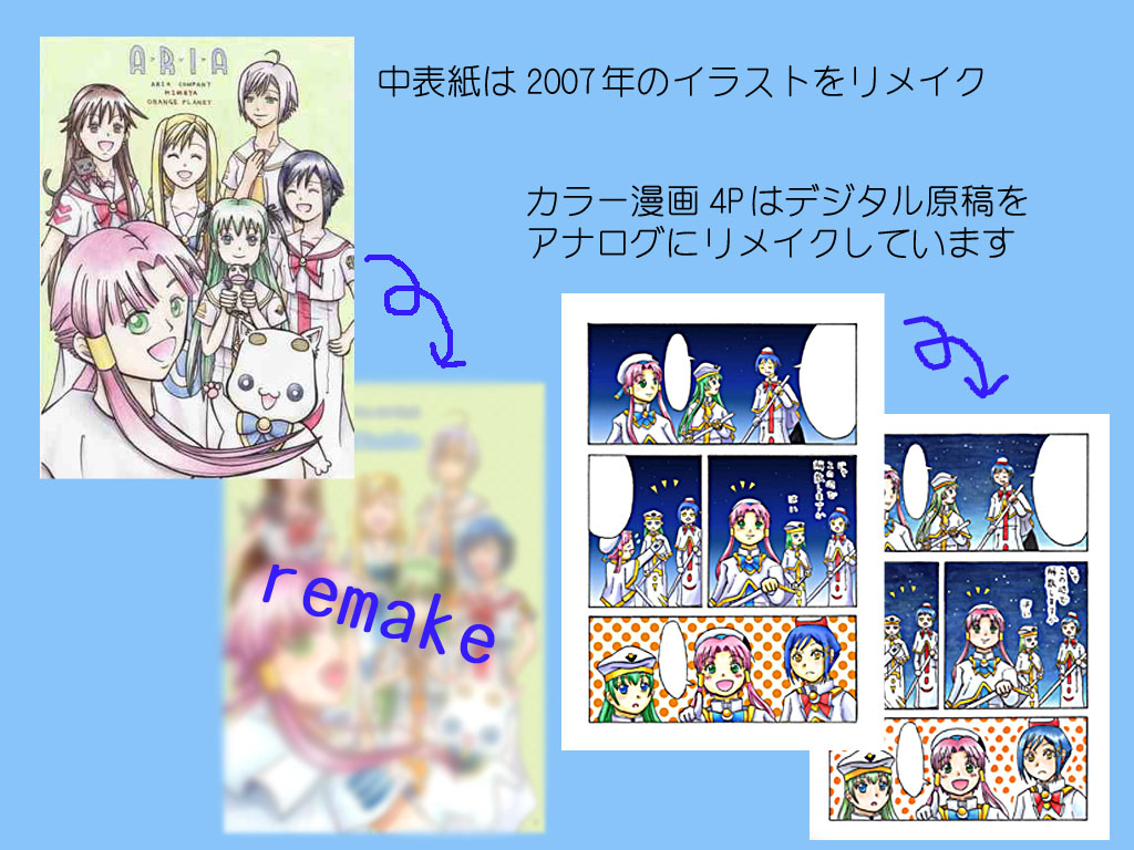 本当はリメイクだけでなく描き下ろしも3枚ほど描きたかったのですが、リメイクだけで手いっぱいになりまして描けませんでした・・・。描き下ろし予定のうち2枚は裏表紙にポージングだけ採用される事になりましたので気になる方はご注文いただけると大喜びします。