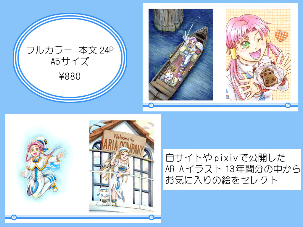 ちなみに中身はサイトとpixivにアップしたイラストで、中表紙のイラストは完全描き直し、デジタル着色で公開しているカラー漫画をアナログ塗りにリメイクしています。